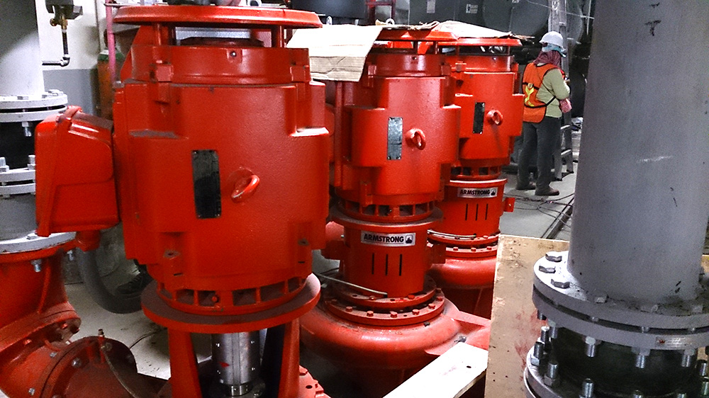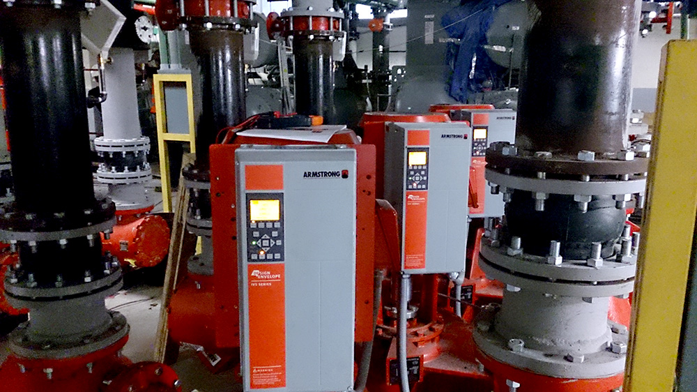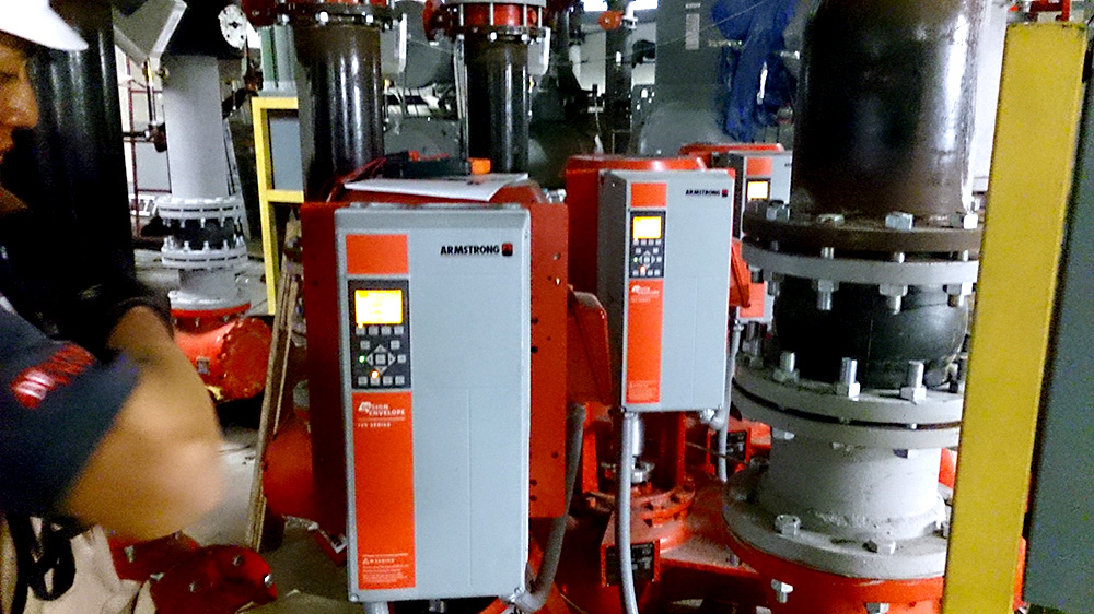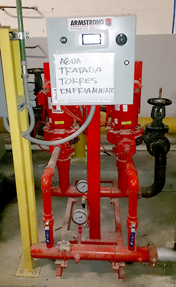- Suministro de equipo de control y bombeo para planta de agua helada de alta eficiencia marca Armstrong para automatización integral, incluyendo bancos de bombeo de condensados y de agua helada, torres de enfriamiento con secuencia de ventiladores, chillers, válvulas de seccionamiento y válvula de by pass del sistema.